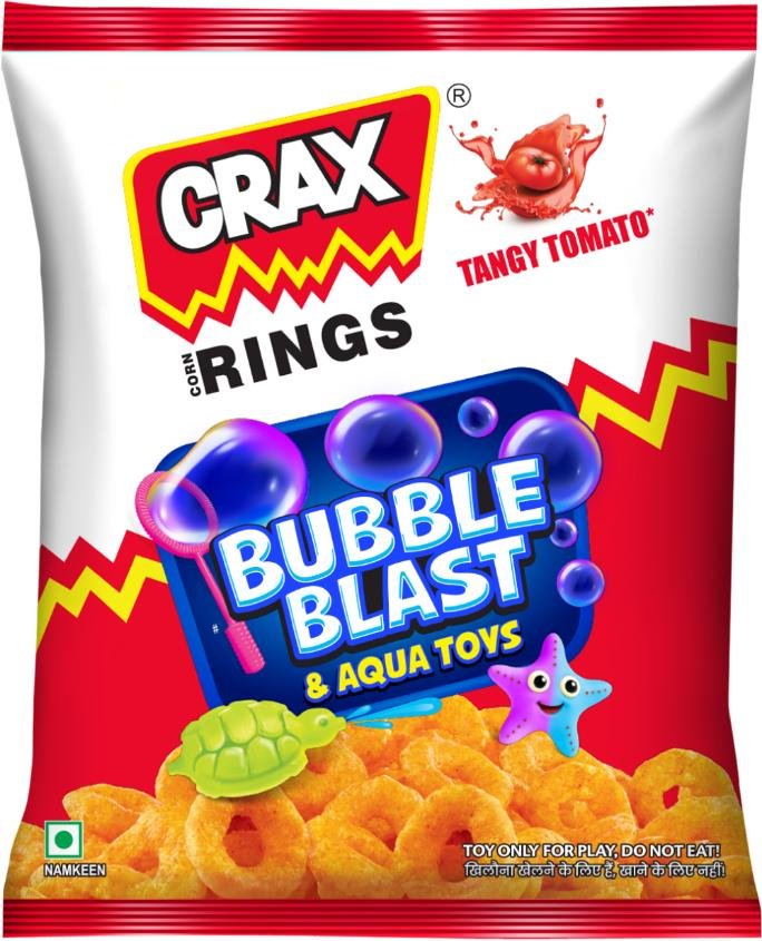 The timeless snack that's been delivering joy for years. Crafted from the goodness of corn, Crax Corn Rings are baked, not fried, for guilt-free munching. It also comes with a surprise exciting fun toy inside taking your snacking experience to a whole new level! Dive into irresistible flavors like Tangy Tomato, Masala Mania, Original Chatpata, and Sour Cream & Onion. Grab your pack of Crax Rings, stack them on your fingers, and savor the taste ka chakkar!